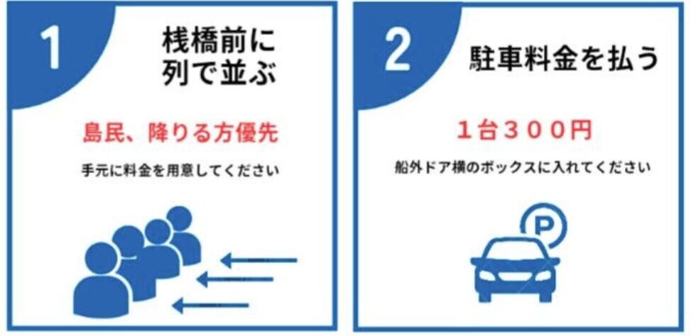 それぞれの駐車場の安定的な運営の為に定期船内に協力金箱を設けております。ご協力よろしくお願い致します。